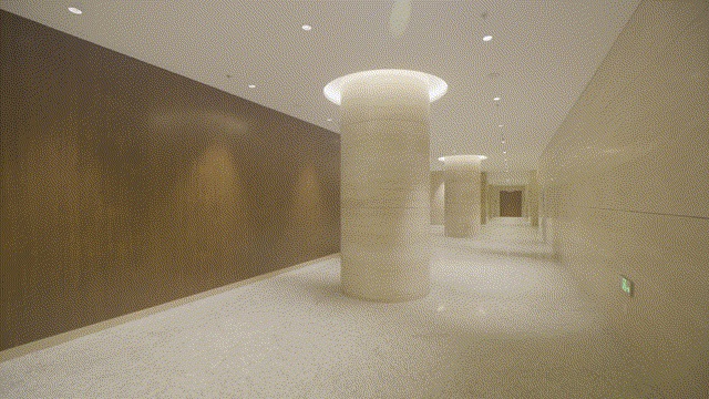 馆内圆柱形石材包柱 竣工实景